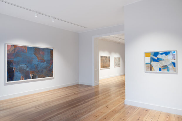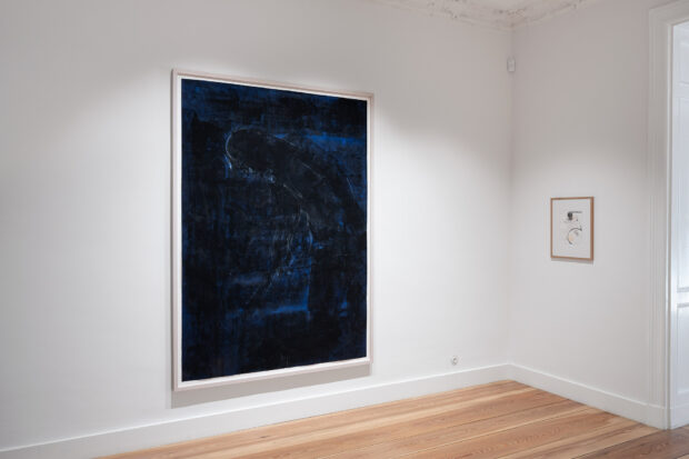 Colour, gestural expression, and transparency are the pillars of Herrmann’s work. She uses pigments, dissolved in water with acrylic paints, a liquid material that she superimposes in transparent layers. What lies under the most recently applied layer of paint always remains visible. She paints freely and expressively with a broad brush, often without the desire to represent anything. Detached from any preconceived plan, she allows the paint to flow. The composition arises from the current situation and cannot be repeated – comparable to the irrecoverable moment that a photograph can capture. However, there are also works where a vis-à-vis appears, a painted or drawn human figure, blurry or vague like an image from a dream.